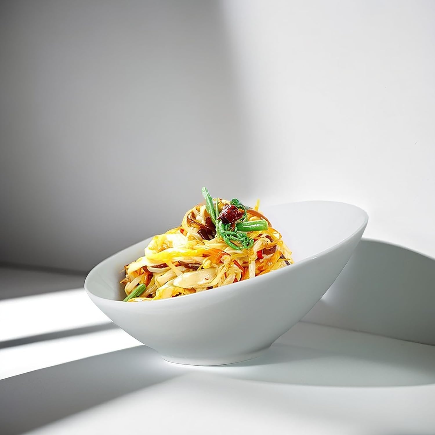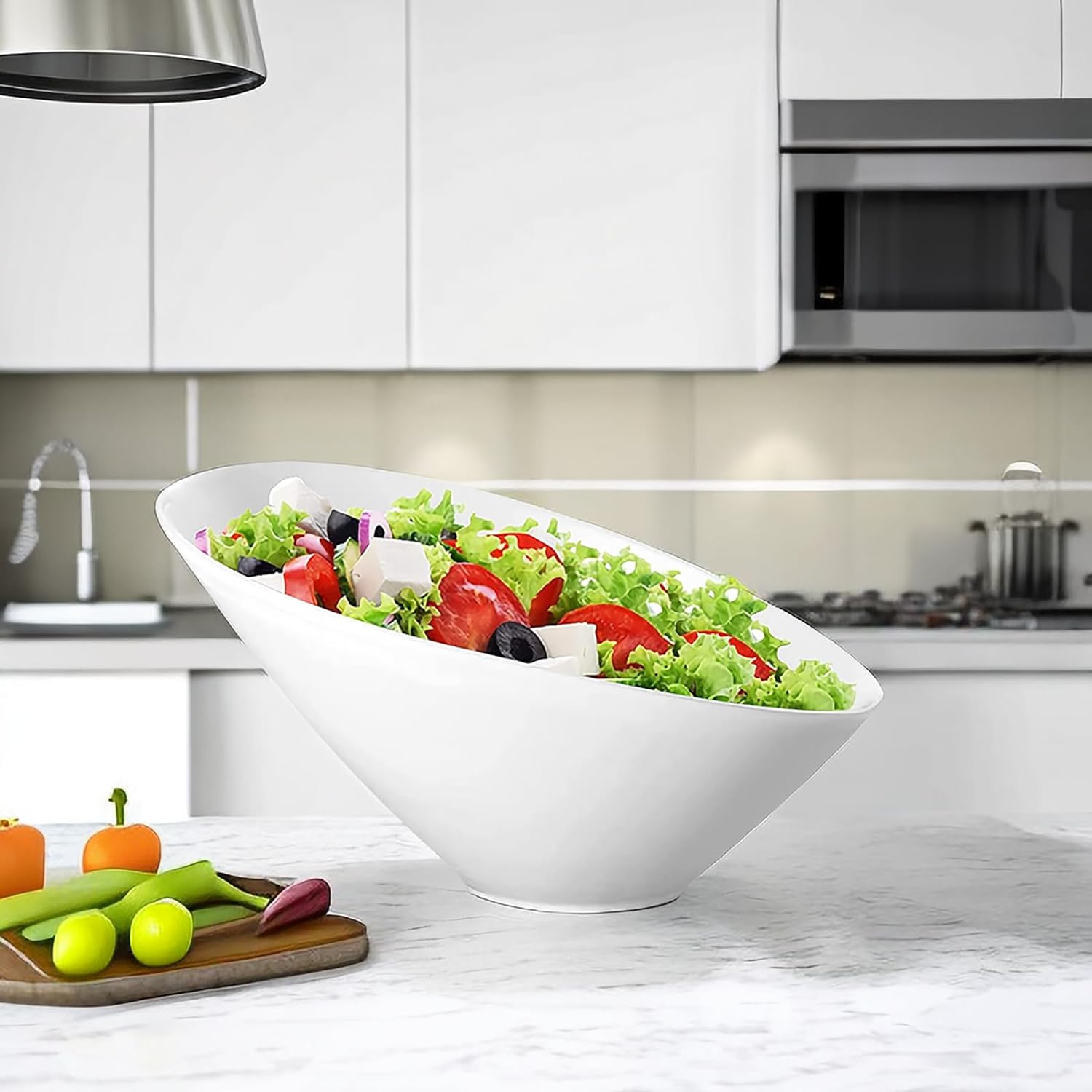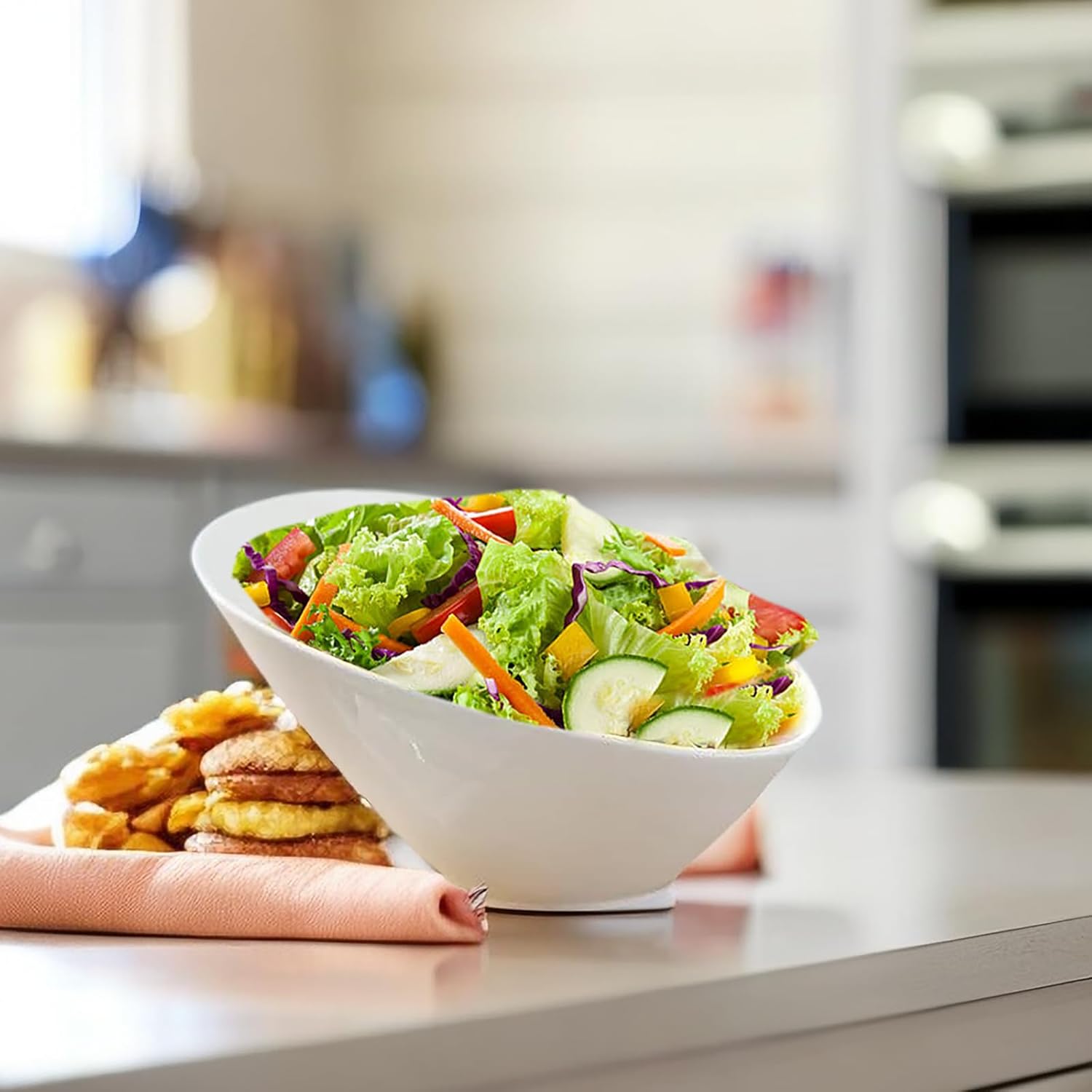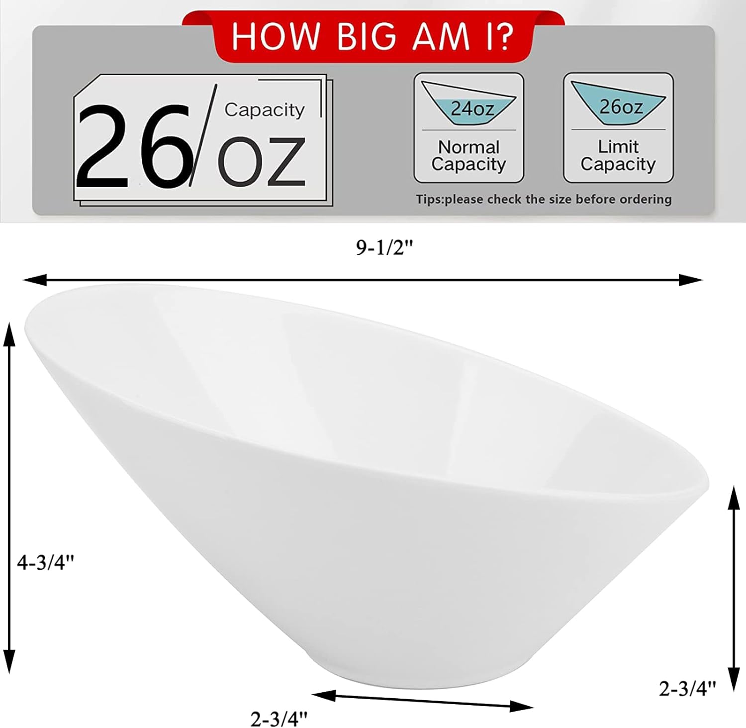 Yesland 2 Pack Porcelain Angled Serving Bowls Ceramic White Salad Bowls Set Slanted Bowls, 26oz (770ml)