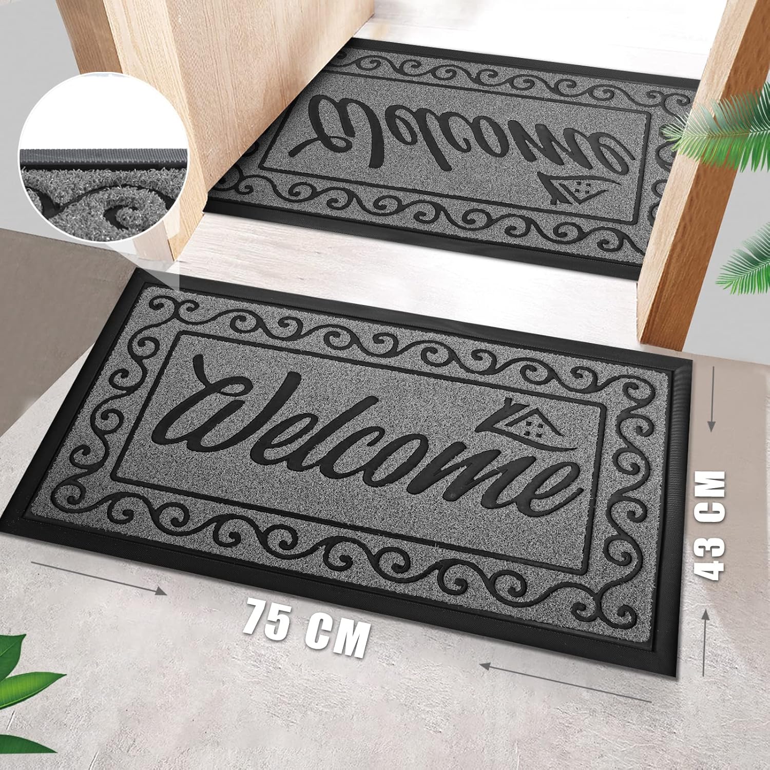 Yimobra Front Door Mat, Heavy Duty, Absorbent, Mud Resistant, Easy to Clean Outdoor Mat with Non-Slip Backingm, 75 x 43 cm, Black Gray