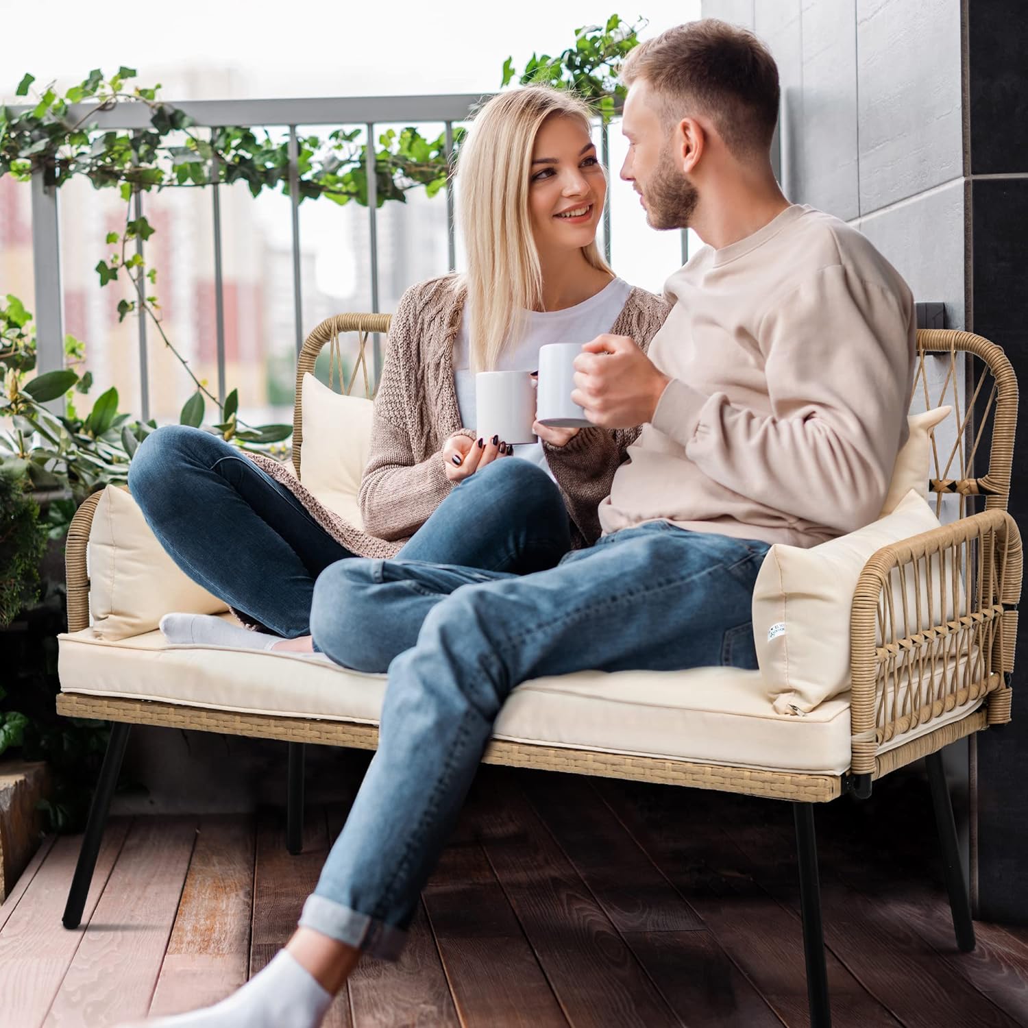 COMFORTABLE SEAT: Looking to experience outdoor leisure in style and comfort? This patio loveseat fits the bill; Ample seat space with thick cushions allows cozy parent-child time, as well as great snuggling with your pet; Cushion cover is detachable for easy maintenance