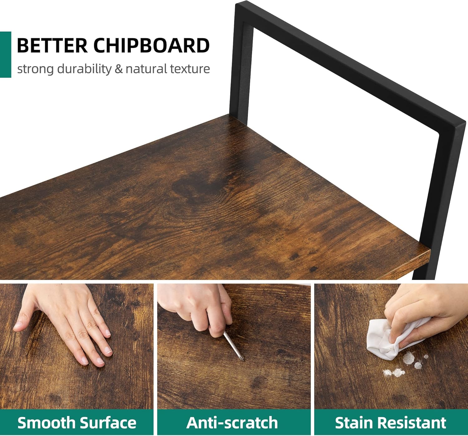 DURABLE & STURDY – Crafted with wrought iron in a matte black finish, and constructed from sturdy boards and black coated metal frame. Uniquely designed metal sidebars with X-shaped rod in the back provides constant stability.
