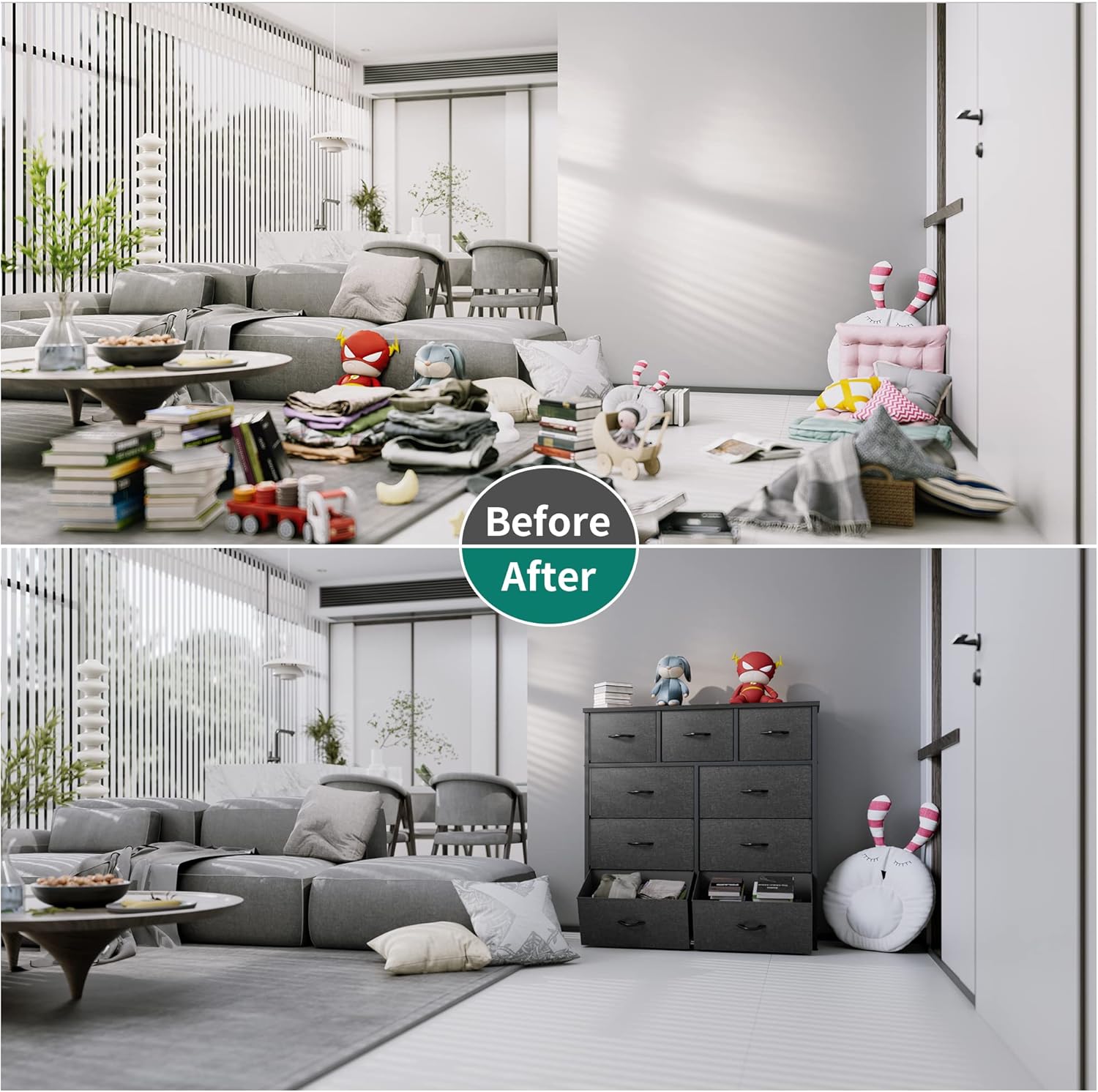 13 reviews for YITAHOME Chest of Drawer, Fabric Dresser with 9 Drawers, Organizer Unit for Bedroom, Living Room, Hallway, Closets & Nursery – Sturdy Steel Frame, Wooden Top & Easy Pull Fabric Drawer (Black Grey)