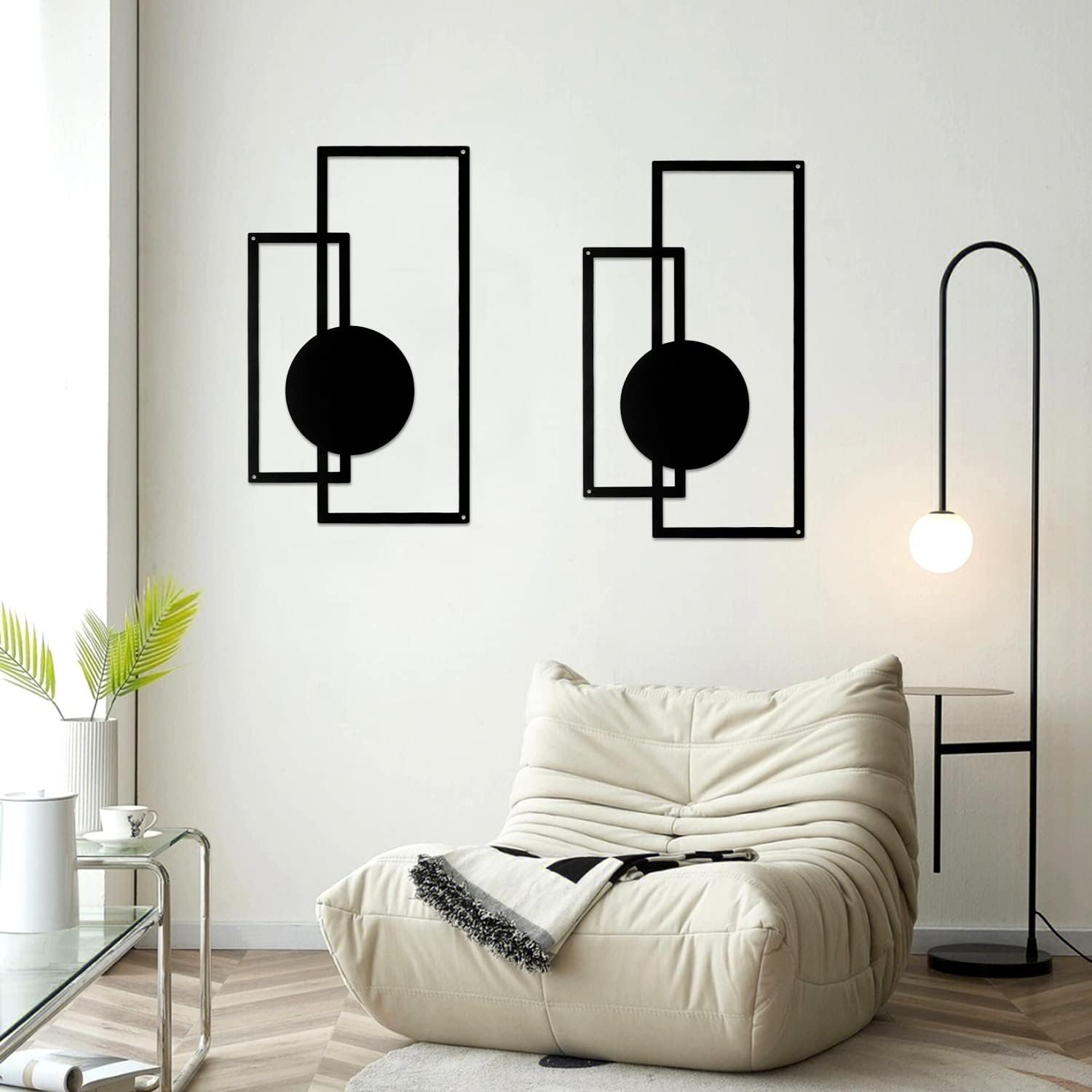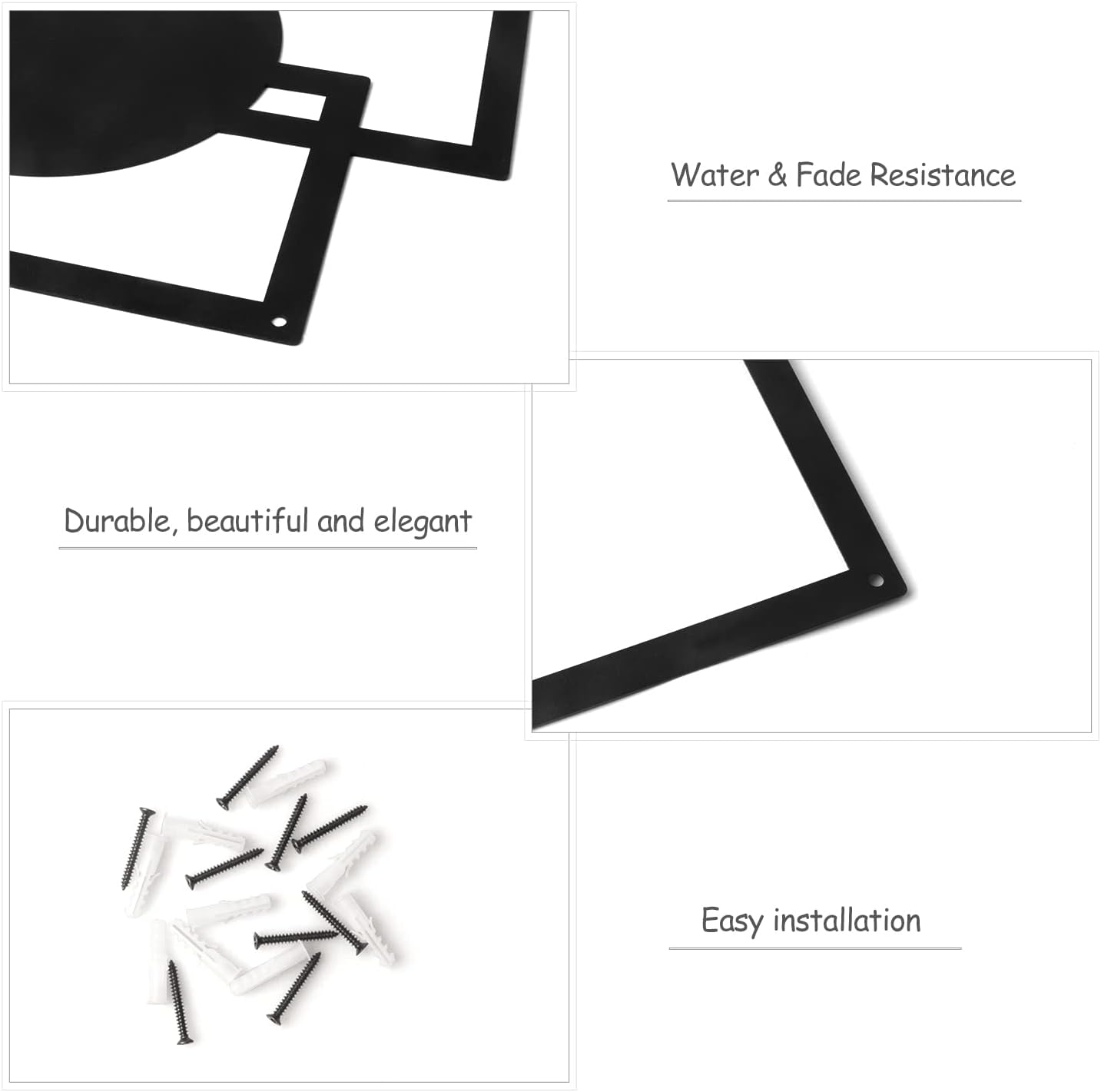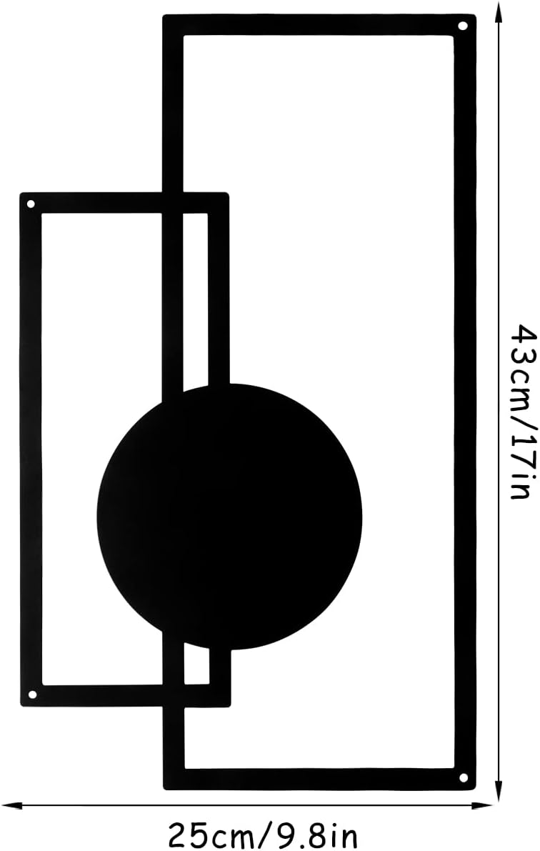 MINIMALIST DESIGN: You will receive two same metal wall decoration. The design of the metal wall decoration is a very simple geometric figure. The graphic is two hollow rectangles, and there is a solid circle in the staggered place. The simple and elegant design adds the fashion and minimalist atmosphere.