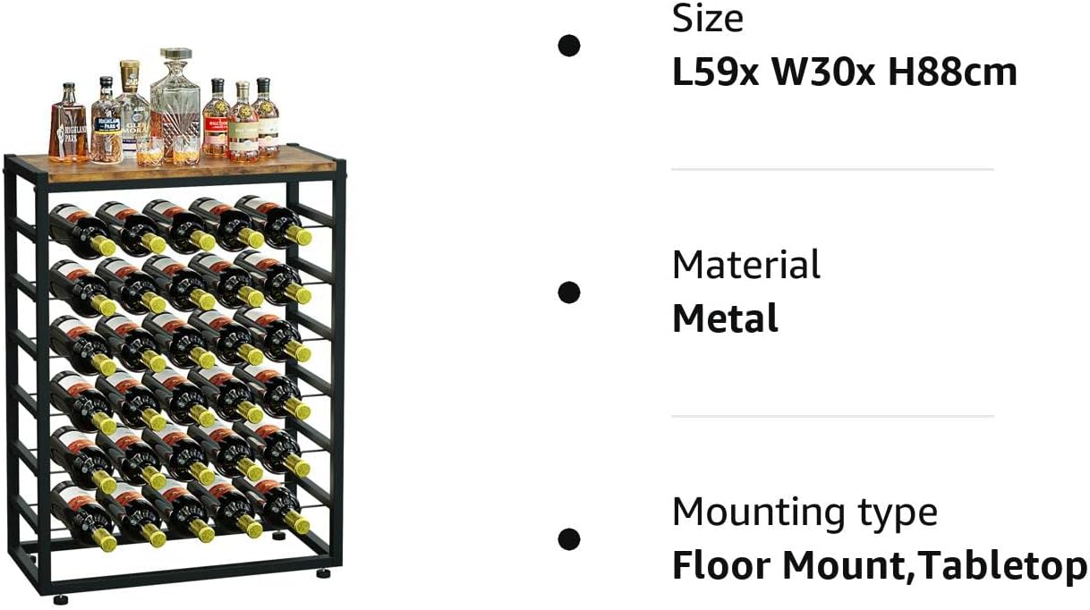 YOLEO 30 Bottles Floor Wine Rack with Wood Top, 6-Tiers Freestanding Wine Bottle Organizer Shelf, Sturdy Metal Bottle Display Holder for Kitchen Pantry (L59x W30x H88cm)