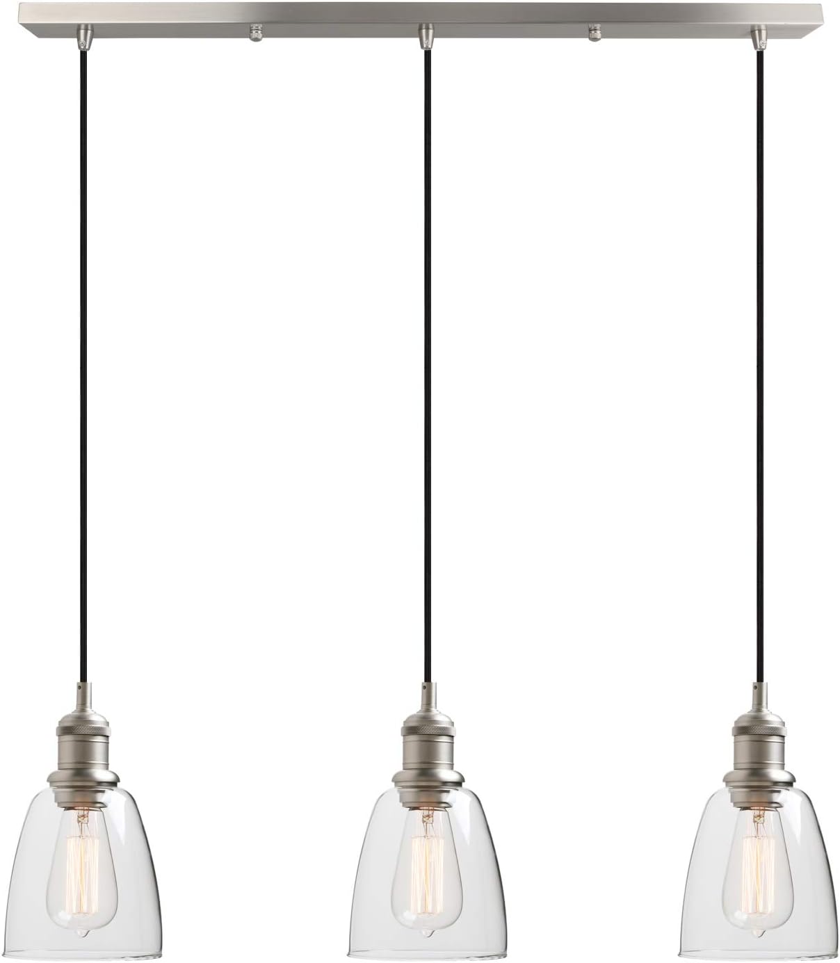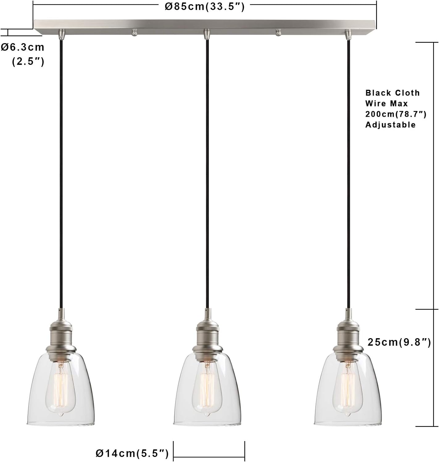 Yosoan Lighting Industrial Vintage Loft Bar 3 Way Pendant Light Fittings Bell Glass shade Chandelier, Hanging Cluster Ceiling 3 Lights Fixture for Dining Room Living Room Restaurant Cafe (Brushed)