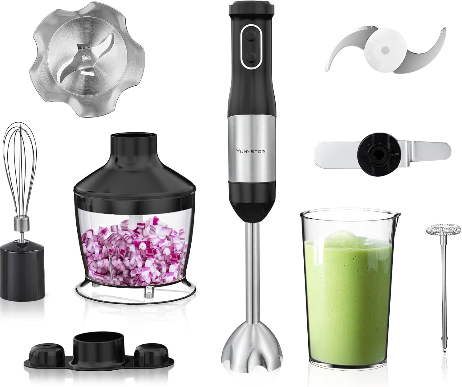 Yumystori Stainless Steel Hand blender Set,7 in 1 Stick Blender 800W,20 Speed Immersion Blender with Ice Crush,Beaker,Chopper,Whisk,Frother,Blenders for Kitchen,Baby Food,Soup,Smoothie,Food Processor