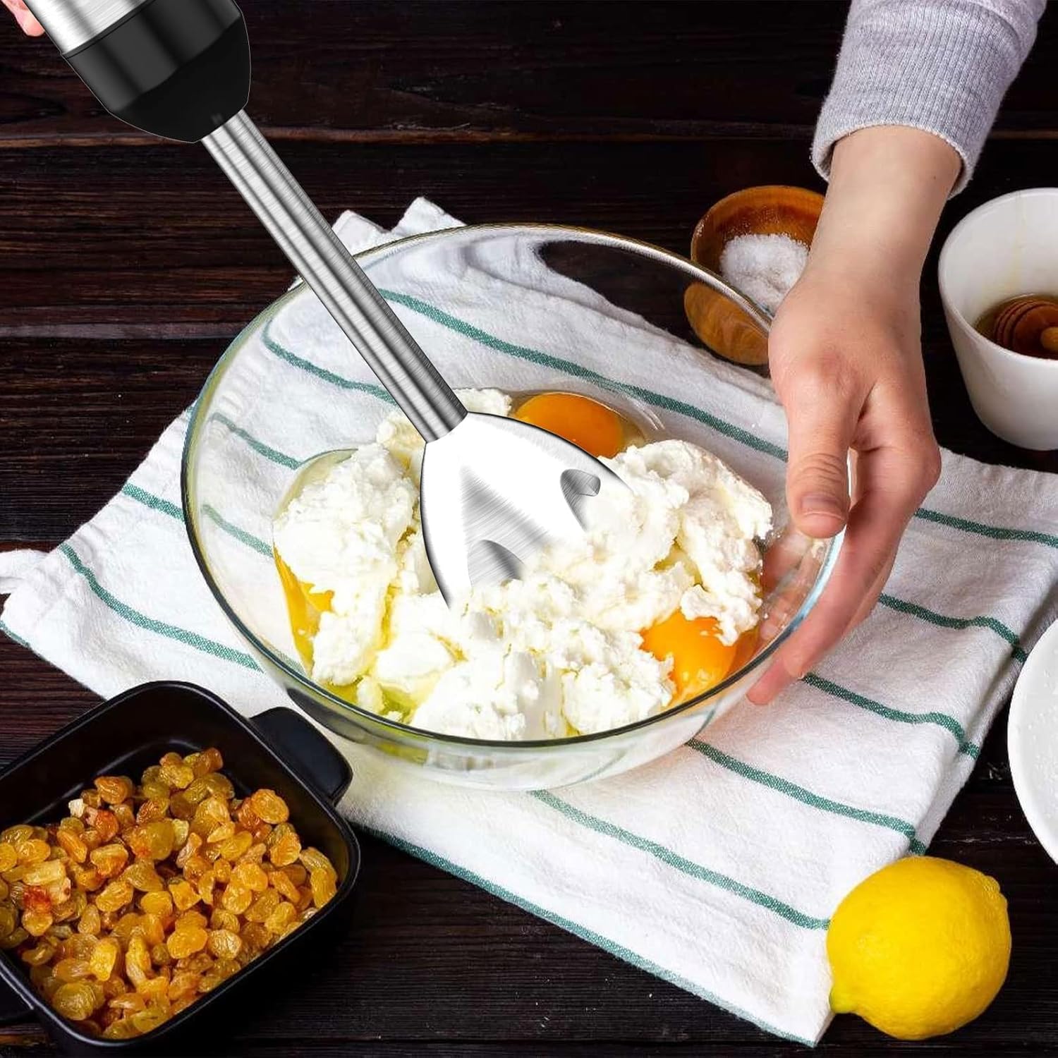 【20 Speed Adjustable and Turbo Mode】Professional 20-speed variable speed hand blenders, you can easily adjust the speed and power according to different foods, easily extract nutrition from various kinds of hardness or size foods. The TURBO button instantly reaches maximum power for better results. Purees soups, batters, smoothies, sauces, fruit and leafy greens, mixes baby food, and more delicious creations can be blending in seconds.