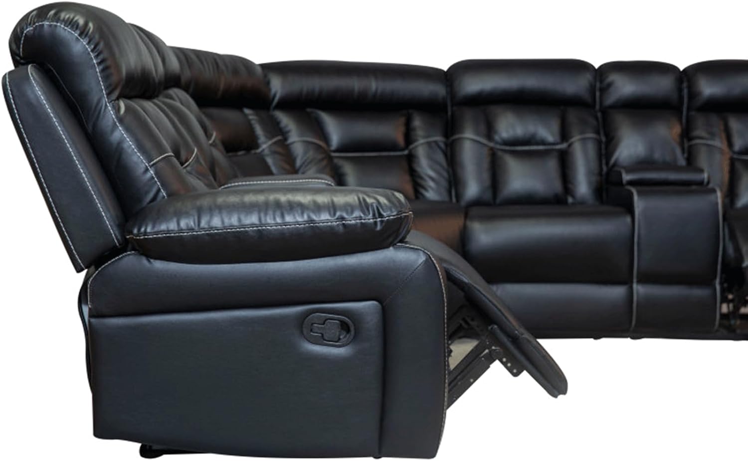YZABEL Black Manual Reclining Sofa, Faux Leather Sectional Sofa Couch Set Couch Sofa Set For Living Room Reversible Sofa Sectional With Storage Ottoman For Indoor Living Room Furniture