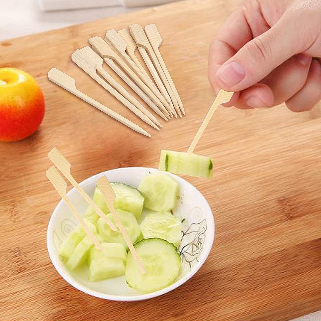 NATURAL BAMBOO MATERIAL: Our paddle skewers are made of natural bamboo material. They have smooth surface and sturdy quality, not easy to break.