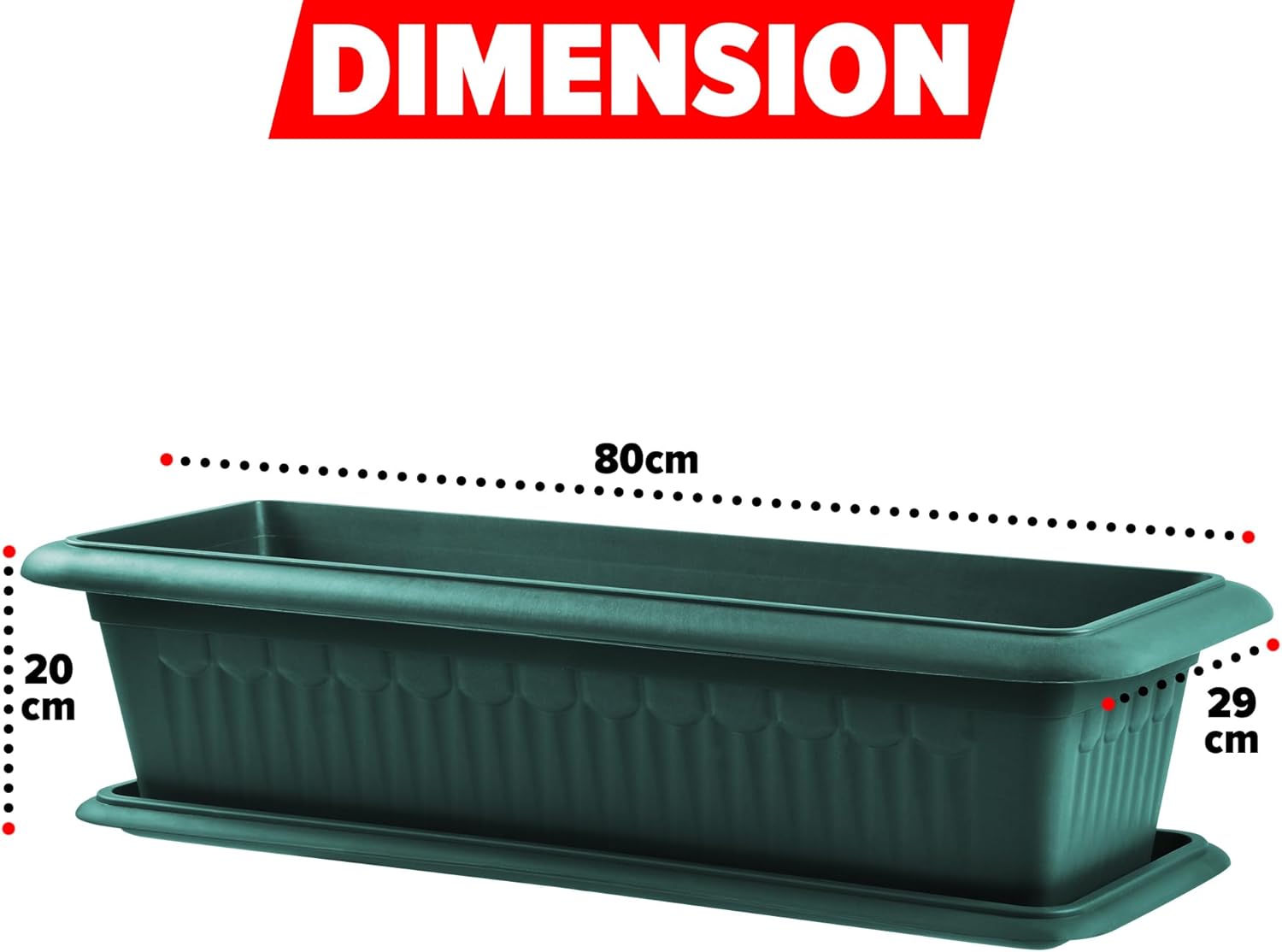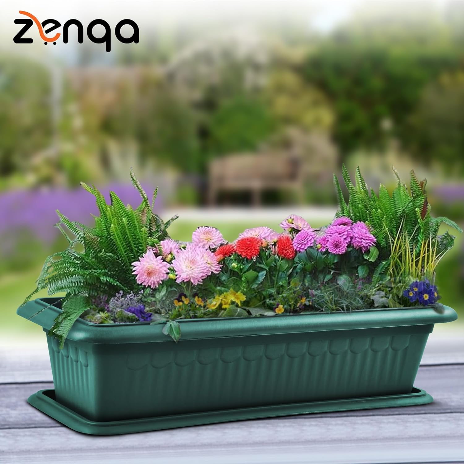 ZENQA 2 x XL Strong Large Trough Planters for Outdoor With Saucer Rectangular 80 cm | Indoor Outdoor Plastic Long Planter Flower Plant Pot | Perfect for Gardens Patios Balconies (2, Green)