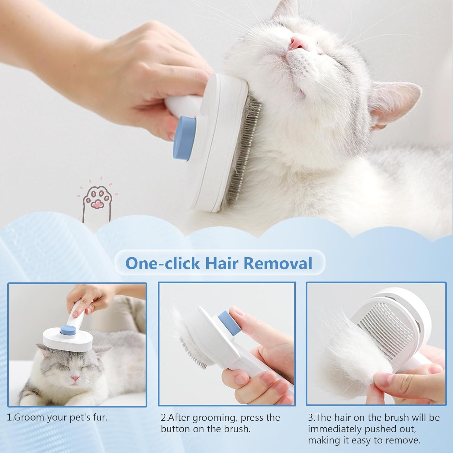 【Easy To Clean】You just have to Simply push the button and the hair will be super simple removed from the cat hair brush.