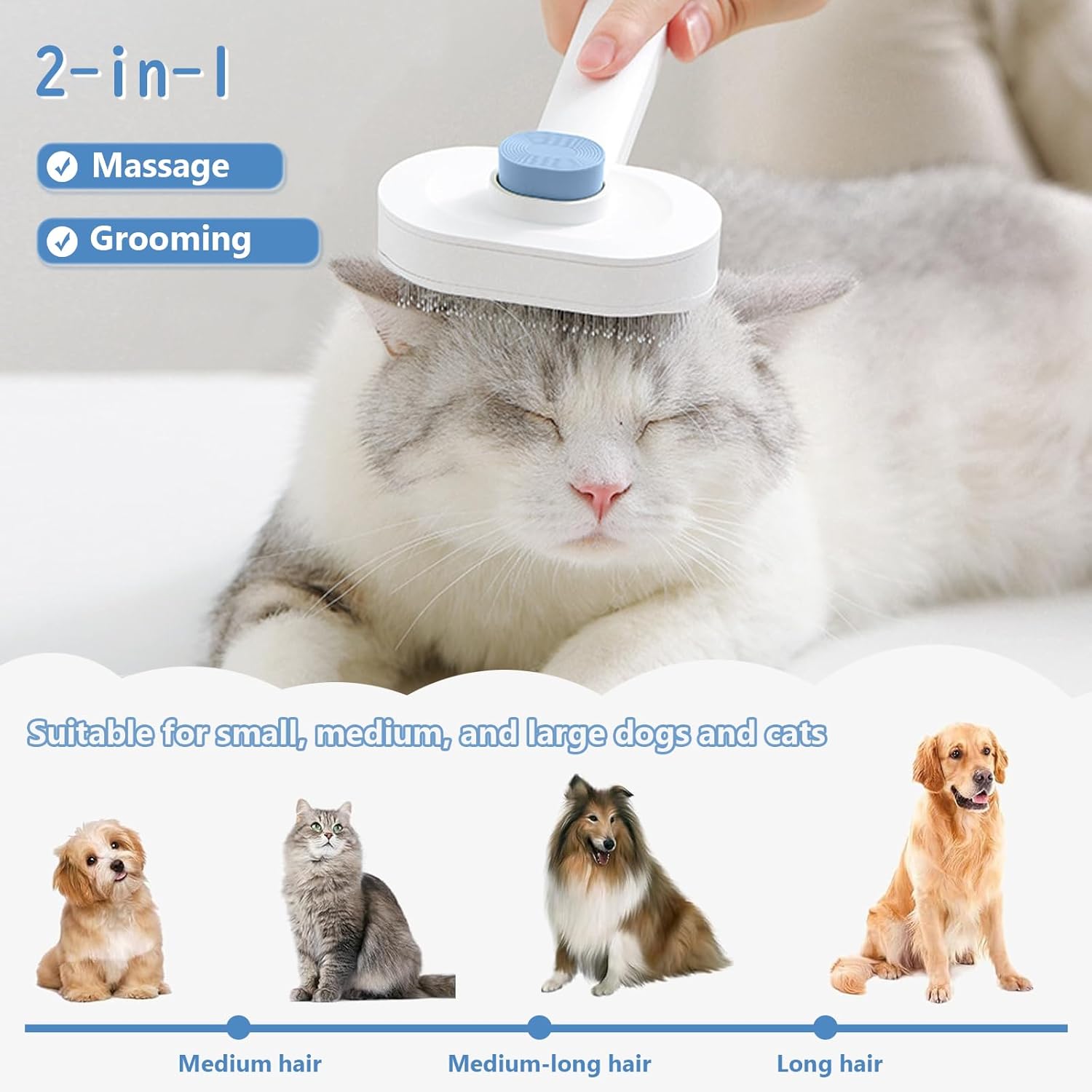 ZEWZE Self Cleaning Cat Brush,Air Cushion Brushes,Airbag Massage Comb Brush for Long or Short Haired Cats Dogs, Removes Loose hair & Tangles, Promote blood circulation,Grooming Brush (White+Blue)