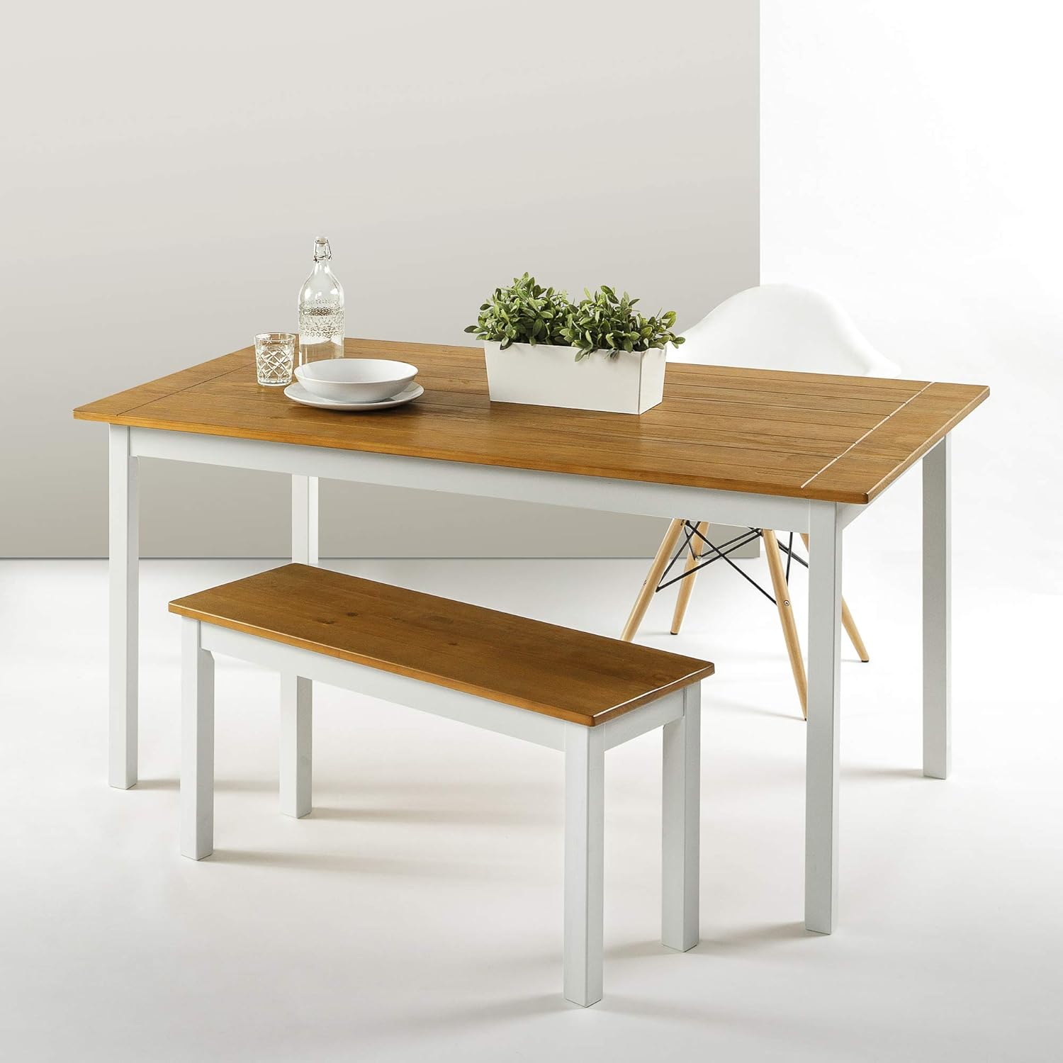 Zinus Becky Bench 92x35x46 cm – 2-seater Bench – Farmhouse Style Wood Dining Bench – Natural Brown and White