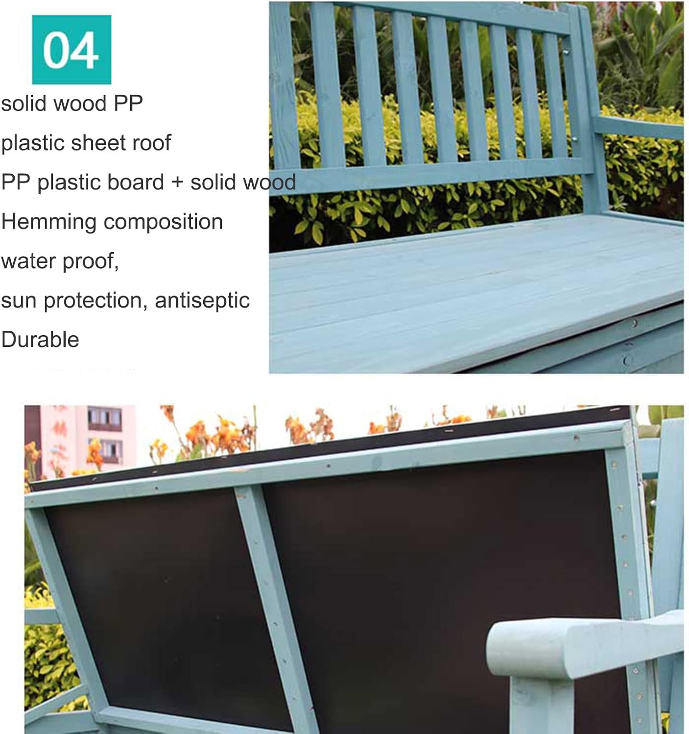 Applicable scene: also can be used as your backyard casual storage bench, porch bench bench, patio chair garden storage box, balcony flower stand