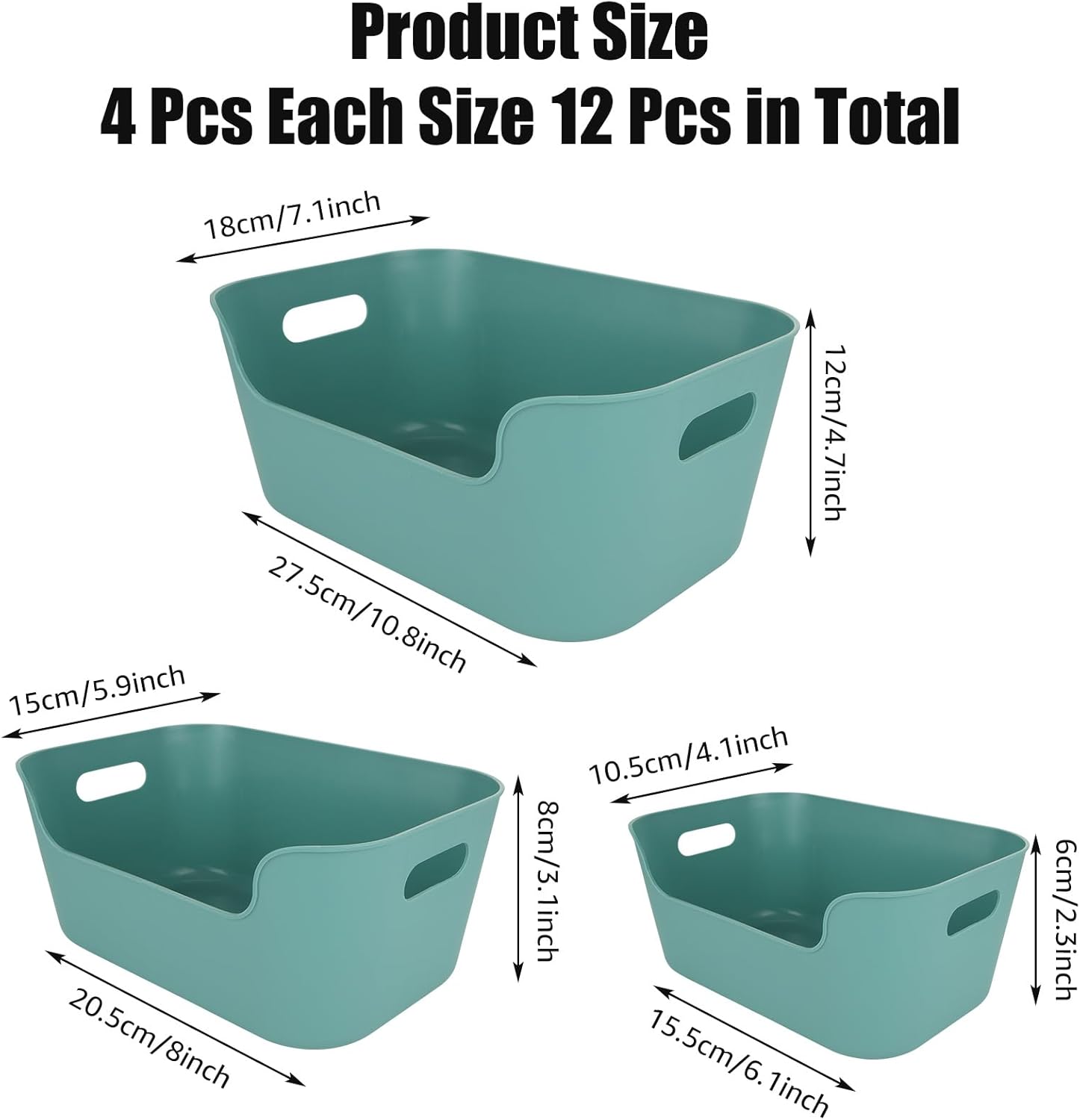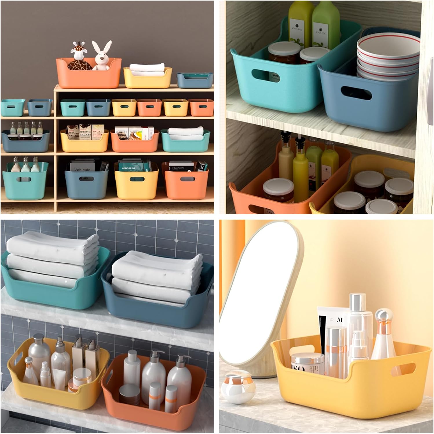 ZOFUN 12 Pcs Cupboard Storage Boxes, Large/Middle/Small Pantry Kitchen Storage Baskets, Green/Blue/Orange/Yellow Plastic Storage Baskets, Small Plastic Storage Boxes for Home Office Storage