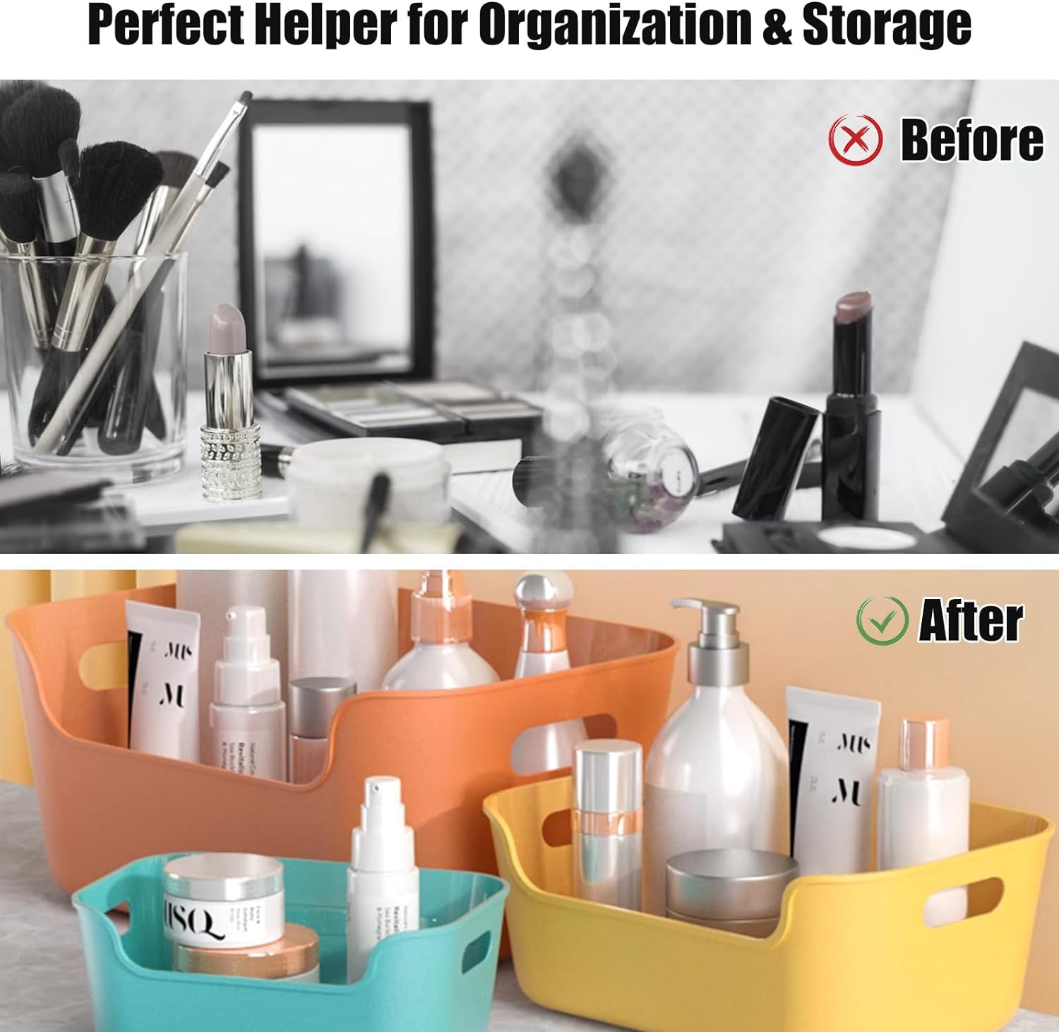 Smooth Surface – The mixed colors plastic storage baskets are designed with smooth surface, scratch-resistant, provide a good texture and easy to clean.