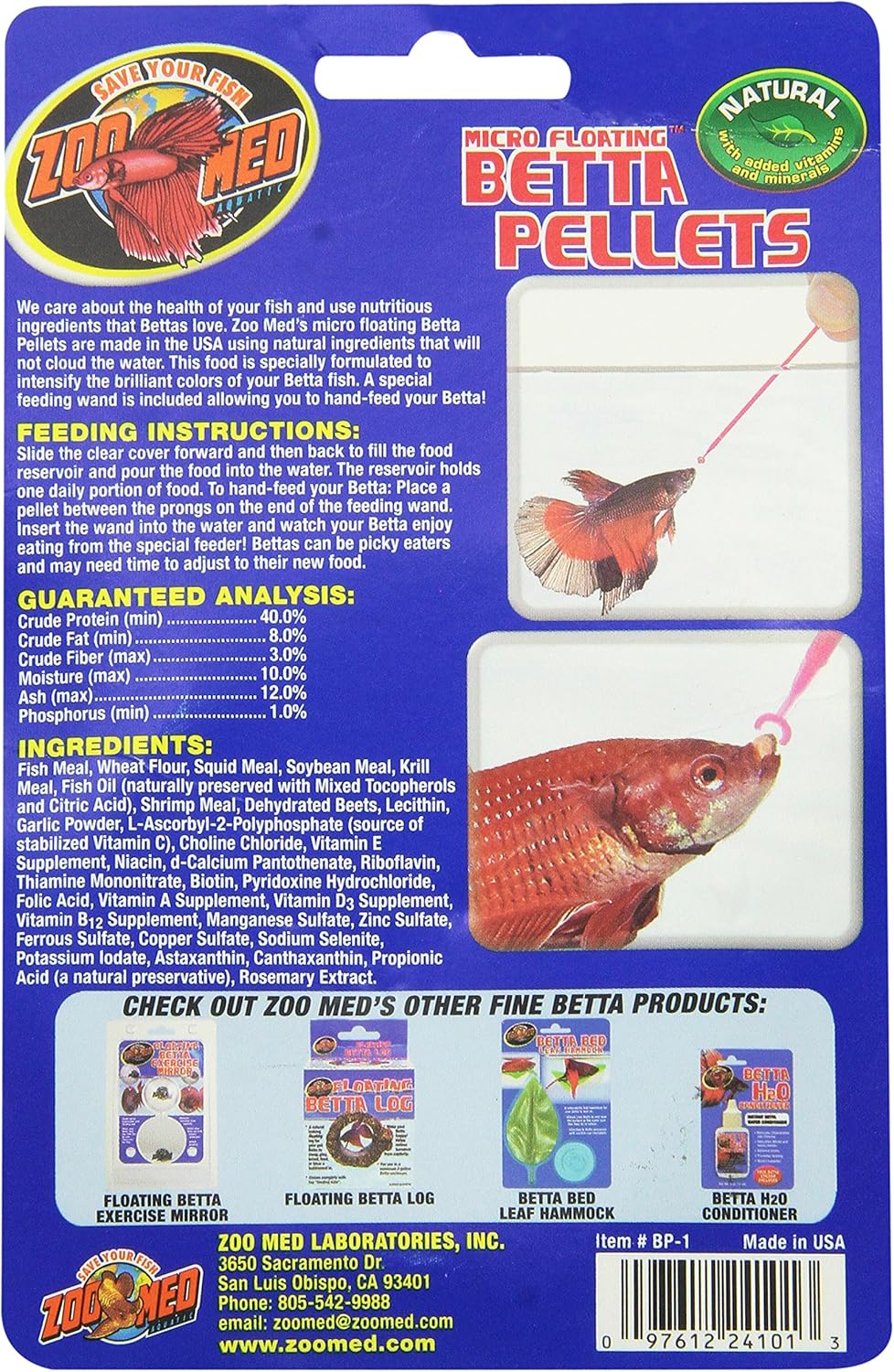 (as of [price_update_date] – DetailsZoo Med’s micro floating Betta Pellets are made in the USA using natural ingredients that will not cloud the water.This food is specially formulated to intensify the brilliant colors of your Betta fish. A special feeding wand is included allowing you to hand-feed your Betta!
