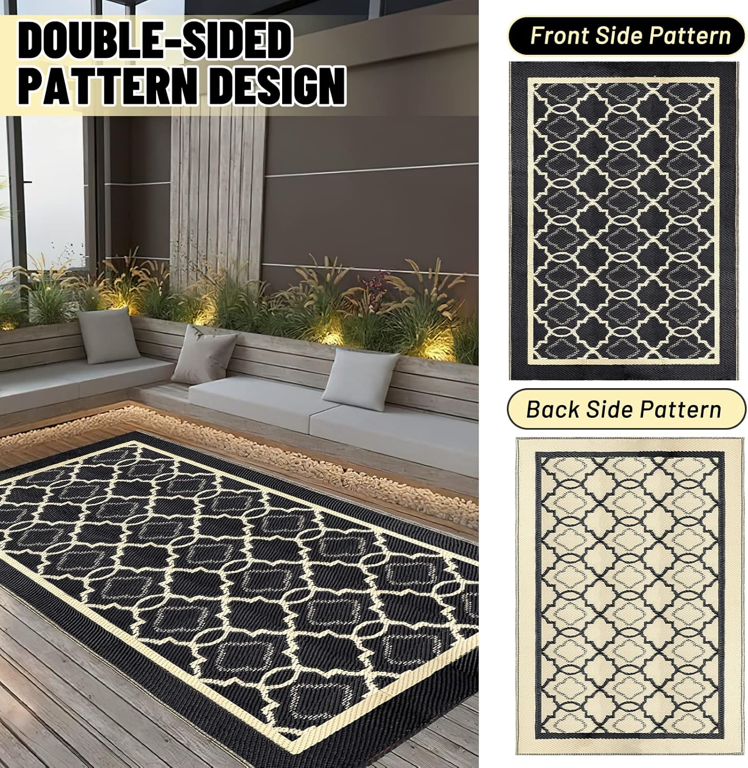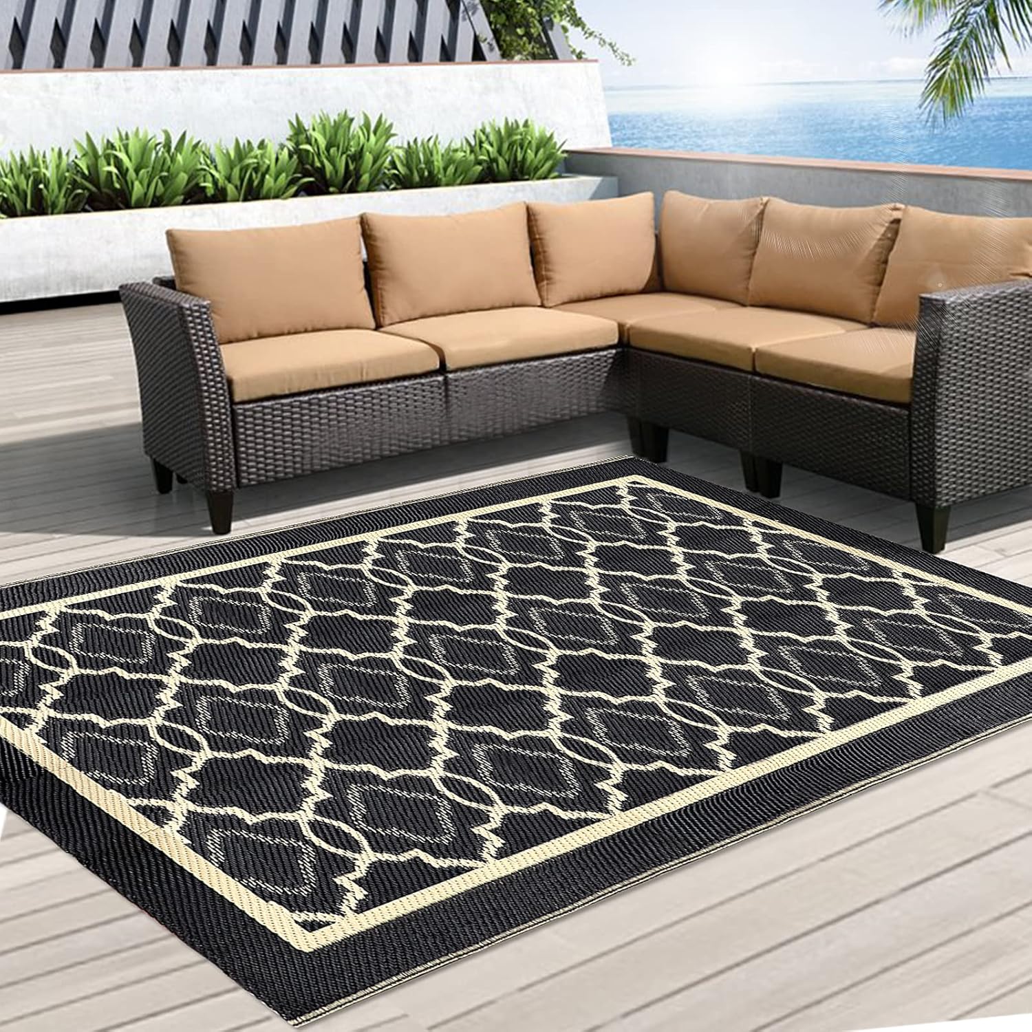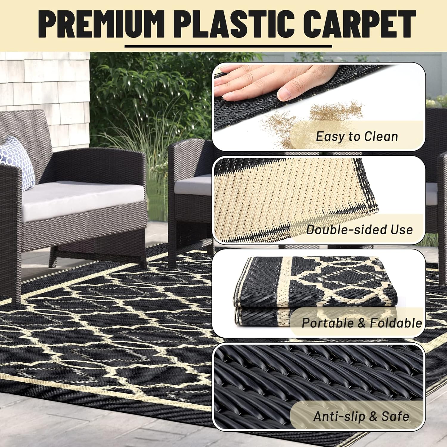 zootop Outdoor Rug Waterproof Carpet for Camping, Large Patio Rug Modern Reversible Plastic Woven Rug Portable Lightweight Camping Mat Area Rug for Beach Garden Patio Balcony Deck 120x180cm (black)