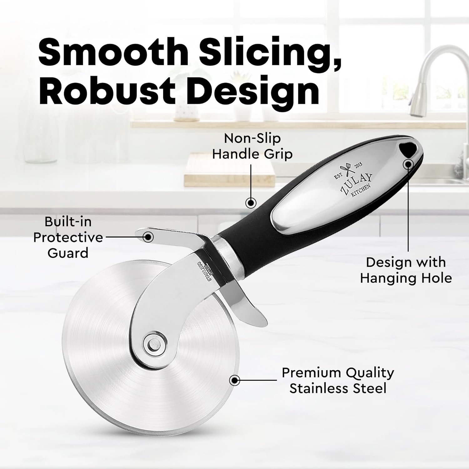 Zulay Premium Pizza Cutter – Steel Pizza Cutter Wheel – Food Grade Pizza Slicer – Smooth Rotating Pizza Cutter Wheel with Non-Slip Ergonomic Handle